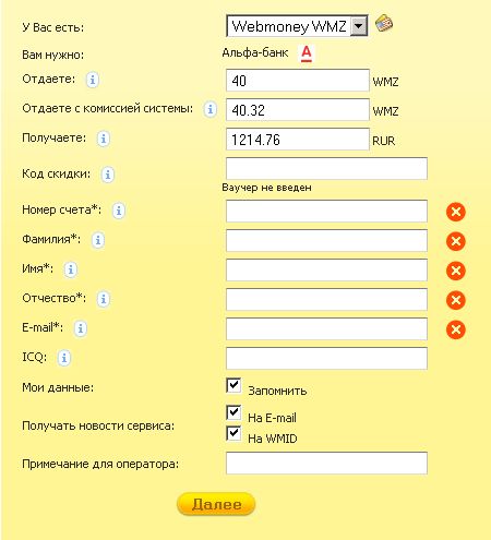 Для этого выберите из предложенного на сайте www.wmcasher.ru списка услуг: Продать WebMoney за Альфа-Банк или наберите в адресной строке браузера http://wmcasher.ru/alfabankout. Вы увидите форму вывода средств: