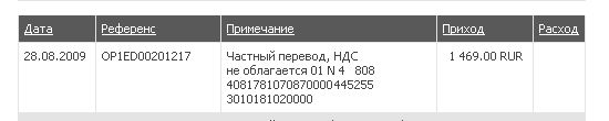 Вы увидите все платежи, поступившие на ваш счет, время поступления средств, а так же номер транзакции.