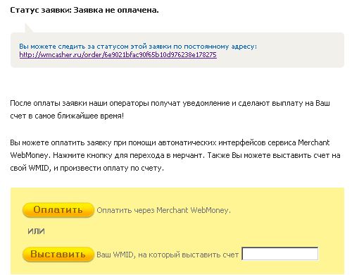 Для того что бы узнать в каком состоянии находится ваша транзакция, достаточно нажать кнопку «Обновить статус заявки». Если после нажатия кнопки, страничка выглядит также, попробуйте нажать на кнопку «Обновить статус заявки», повторно, спустя несколько минут. Возможно, ваша заявка еще обрабатывается.
