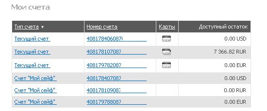 Где сможете увидеть все открытые счета, средства на них, осуществить желаемые операции и просмотреть историю.