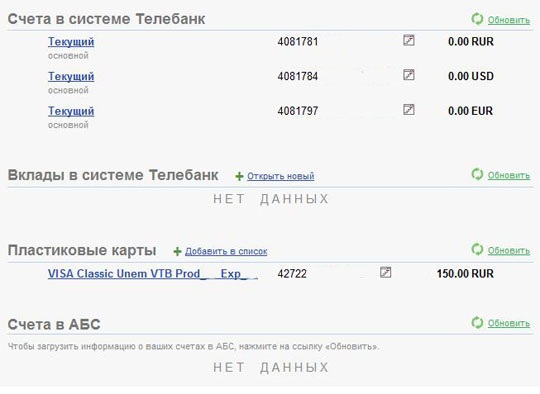 После того, как специалист сообщит Вам о том, что подключил Вашу карту к системе Телебанк, выйдите из системы, воспользовавшись кнопкой «Выход» и войдите в систему Телебанк еще раз. Вы увидите информацию обо всех подключенных картах.